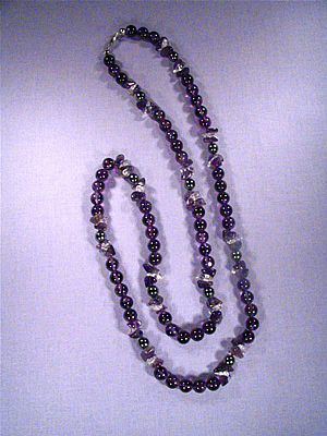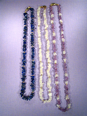 Ädelstenshalsband i egen design. Halsbanden är mellan 40-60 cm långa.