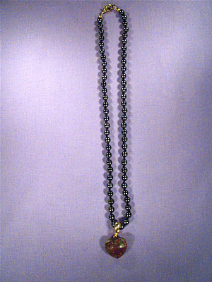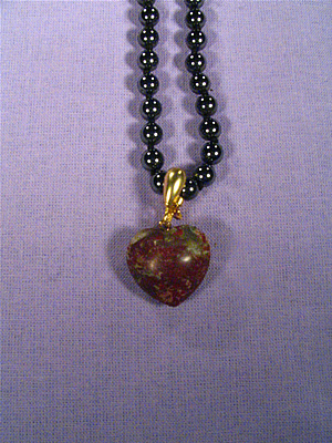 Övriga smycken Spännen används för att korta av långa smycken. Det vackra jaspishjärtat kan hängas på vilket halsband som helst – här på ett fint ädelstenshalsband av hematit.